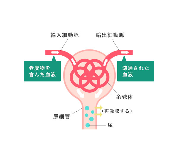 腎臓は血液を濾過することで血液中にある必要なものと不必要なものを選別します。そして必要なものは体内に残し、不必要なものは尿として体外に排泄する働きを担っています。